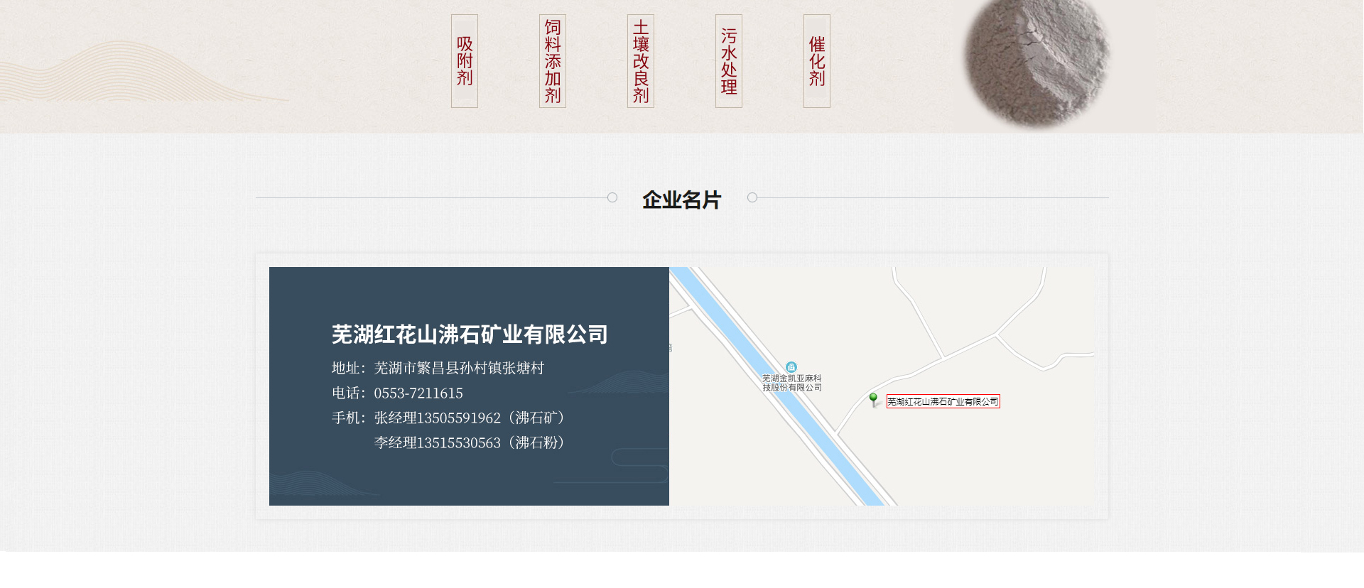 蕪湖紅花山沸石礦業(yè)有限公司距繁昌縣約18公里,有公路直達(dá)礦區(qū),距滬銅鐵路線的繁昌站、楓香墩站約20公里,礦區(qū)西側(cè)的赤沙河道直通荻港至長江,水路交通地理位置好。沸石是硅氧、鋁氧四面體構(gòu)成的架狀硅酸鹽,有較大的比表面積和孔體體積。我礦沸石經(jīng)321、803地質(zhì)隊(duì)勘探儲(chǔ)量約一億噸以上,主要為絲光沸石(Ca、Na、K2)【ALSi2O2】27H2O,此外還含有石英、蒙脫石等,經(jīng)合肥工業(yè)大學(xué)、蕪湖市科委、華東冶金地質(zhì)礦產(chǎn)研究所、南京地礦研究院等單位測(cè)試測(cè)定沸石含為55%—68%。